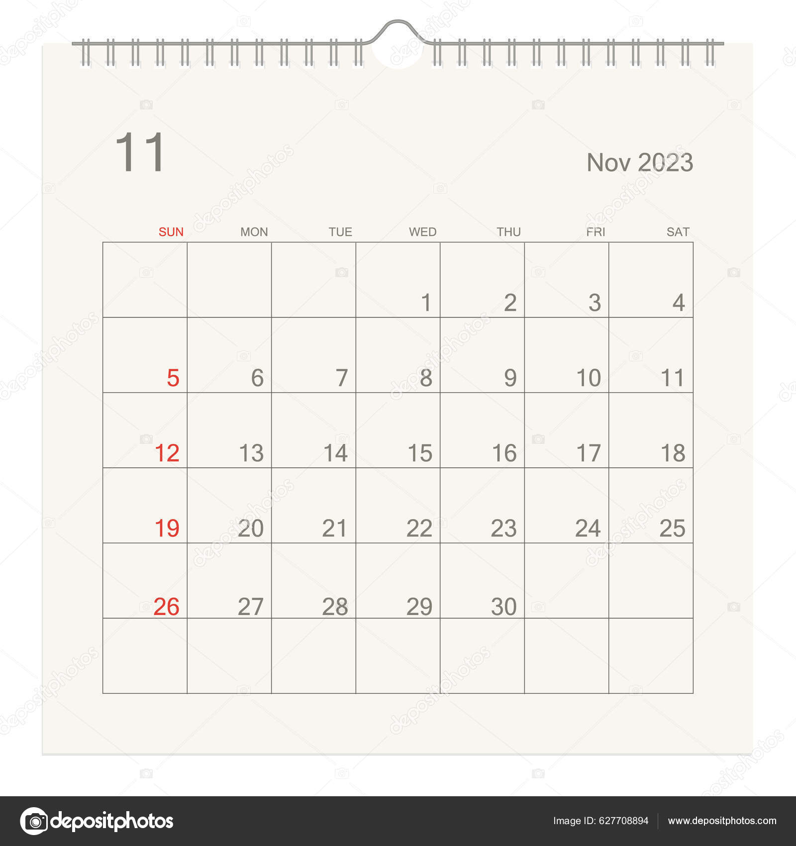Calendrier Mensuel De Novembre 2023 Illustration Stock - Illustration du calendrier, neuf: 256642208