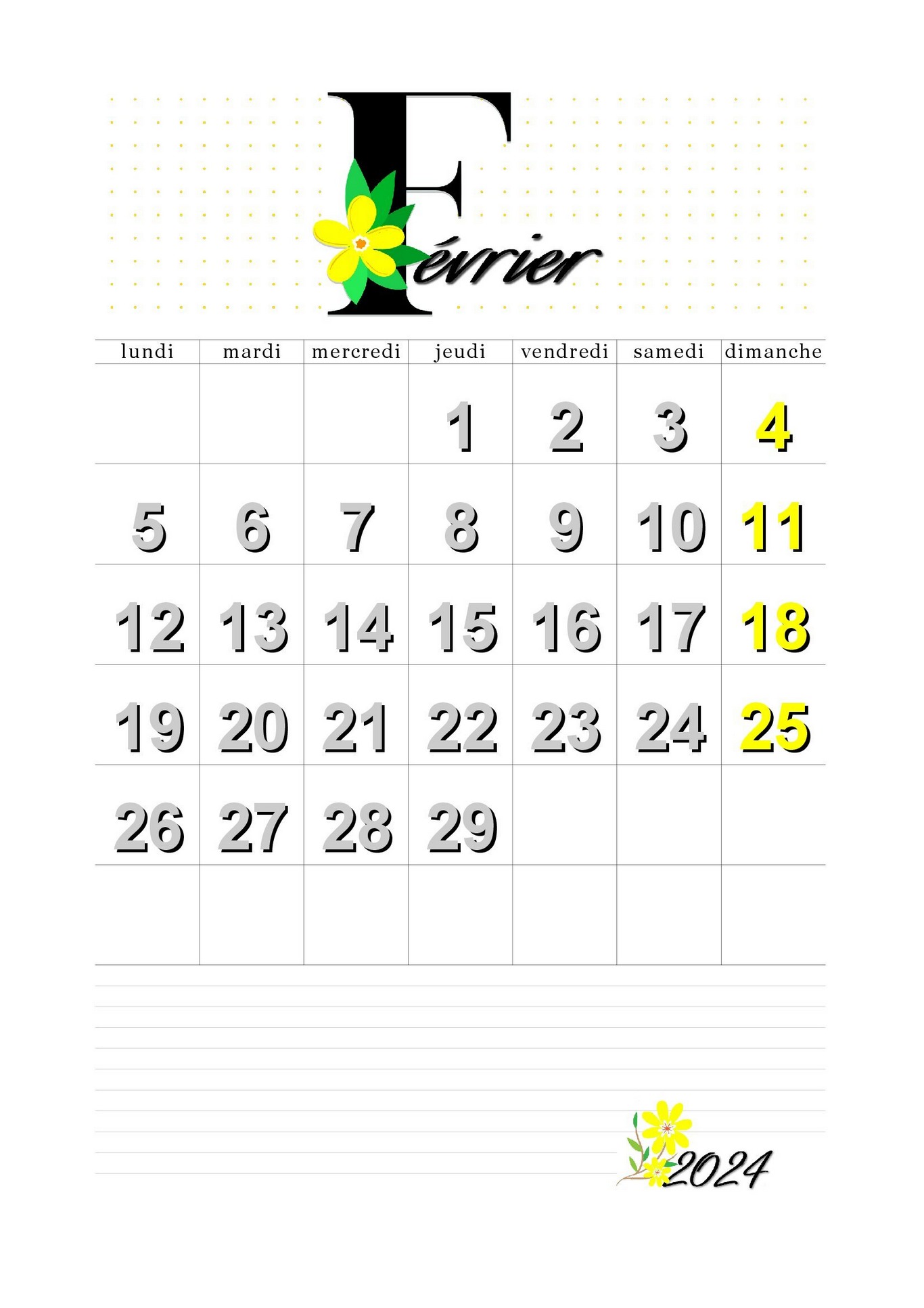 Février 2024 calendrier à imprimer