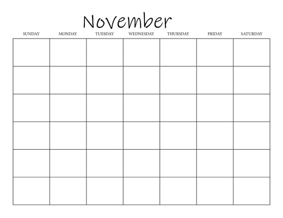 Calendrier vierge mensuel, calendrier simple, 11 x 8,5 pouces, pages de calendrier imprimables horizontales, PDF imprimable, téléchargement immédiat - Etsy France