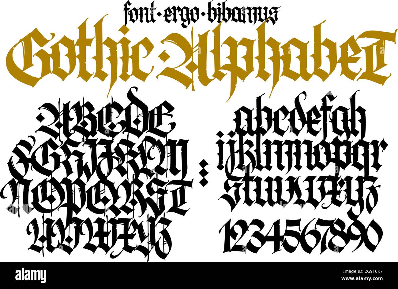 Alphabet gothique complet. Vecteur. Majuscules et minuscules sur ...