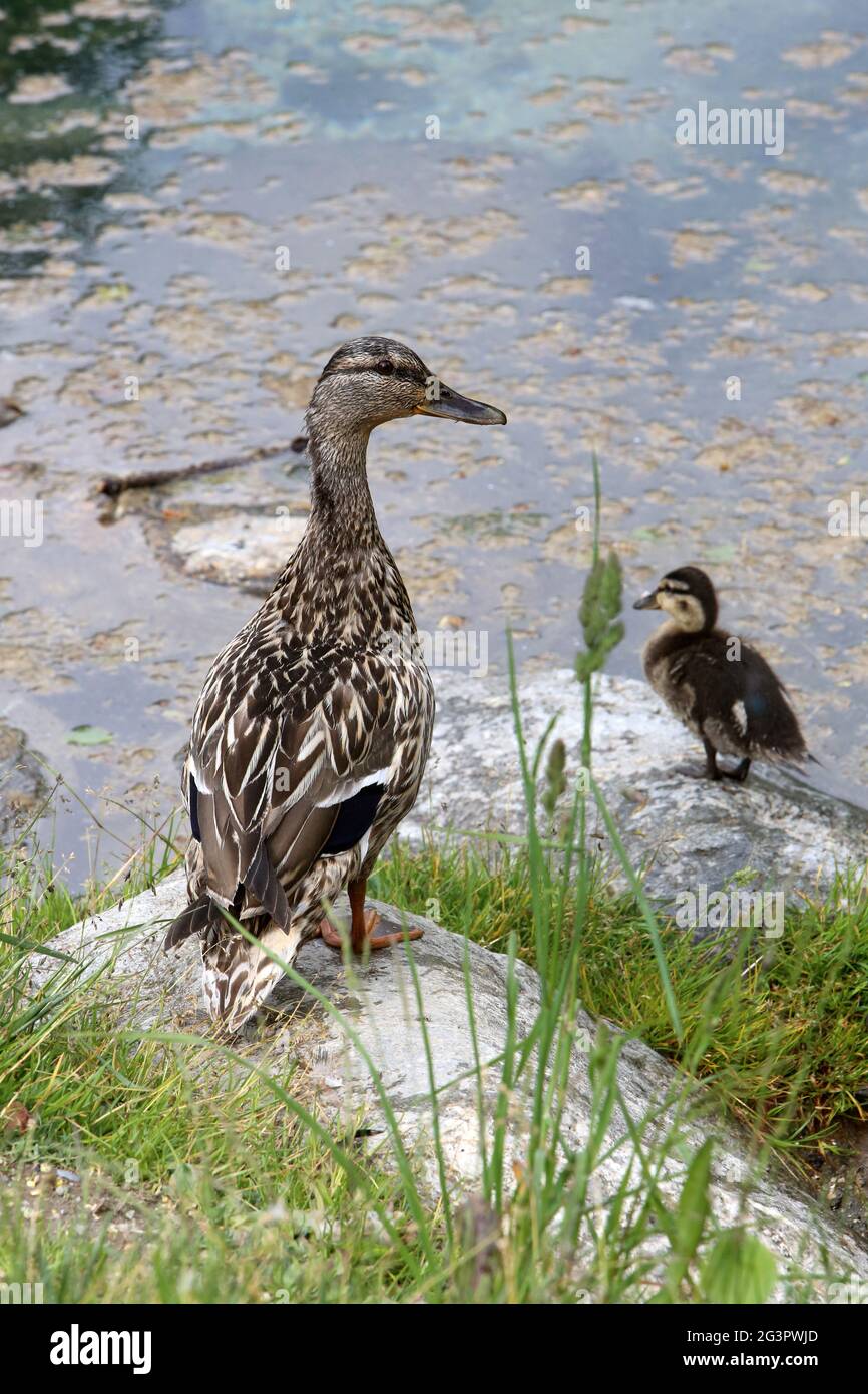 Canard colvert et canetons Banque de photographies et d'images à haute résolution - Alamy