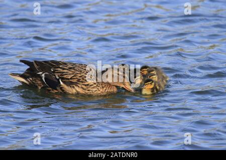 Un Canard Colvert Mâle Et Femelle Avec Deux Canetons Photo stock - Image du canards, gens: 214220390