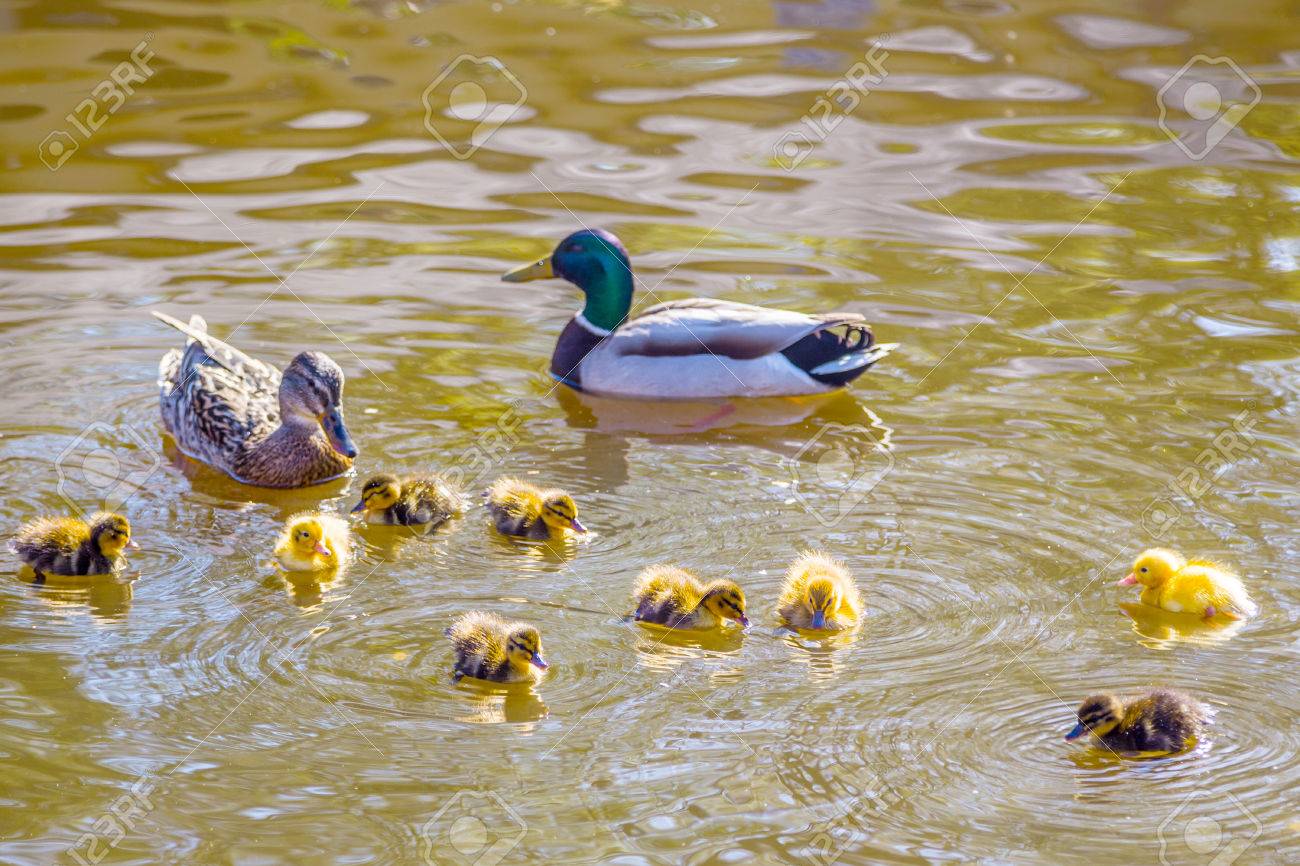 Mère De Canard Avec Ses Canetons Banque D'Images et Photos Libres De Droits. Image 43418486