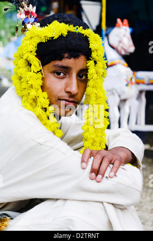 Jeune homme de Kshatriya caste élevée en tenue traditionnelle au festival de Nagar, Kullu Valley, Himachal Pradesh, Inde Photo Stock - Alamy