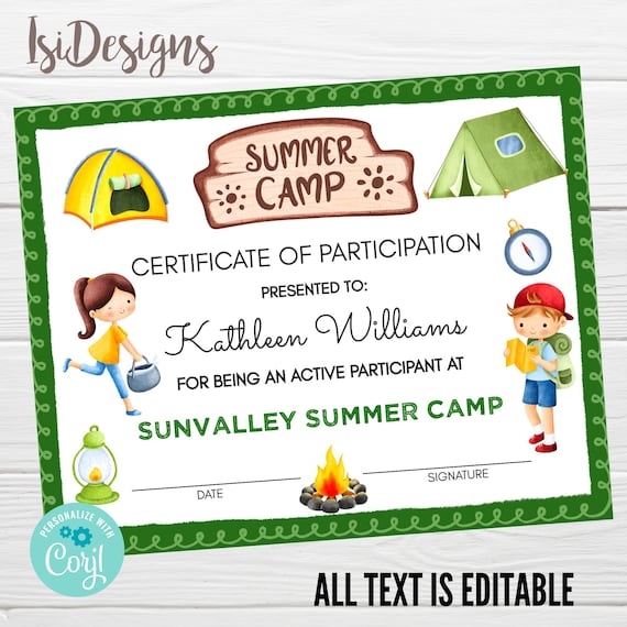 Certificat modifiable du camp d'été, modèle imprimable d'été pour enfants, certificat de participation, prix du camp d'été, téléchargement numérique - Etsy Canada