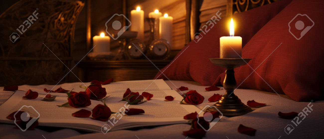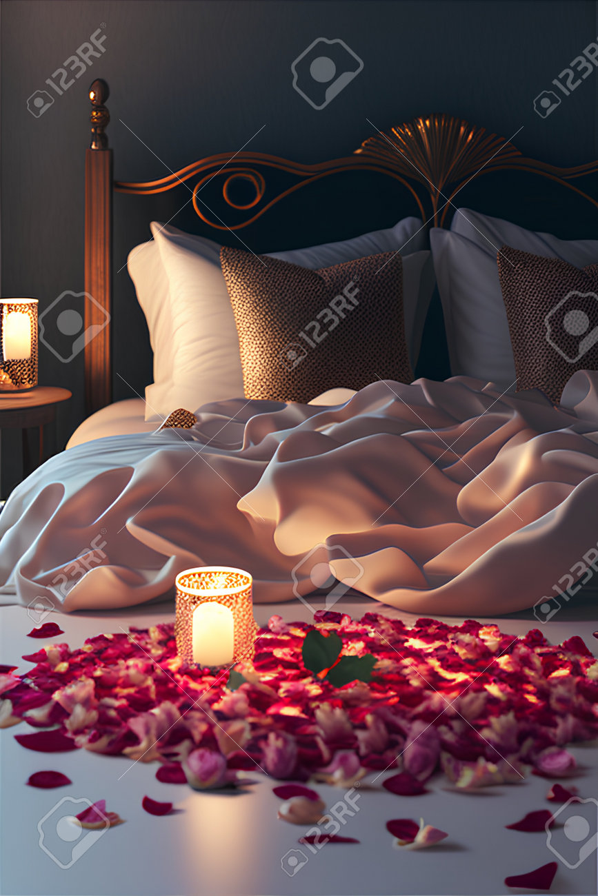 Ai Généré L'illustration D'un Intérieur Chambre Romantique Avec Des Bougies Et Des Pétales De Rose Illustration Stock - Illustration du architecture, numérique: 268059670