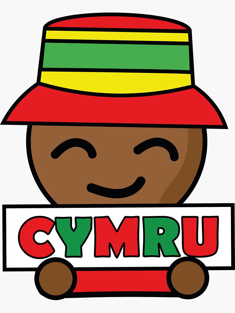 Sticker for Sale avec l'œuvre « Fan de football du Pays de Galles de dessin animé tenant une pancarte Cymru portant un chapeau de seau » de l'artiste egogrenade | Redbubble