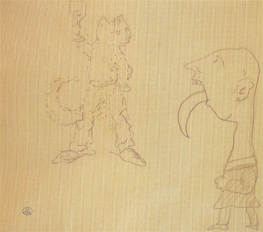 Chat portant un toast à un personnage grotesque à la langue tirée ...