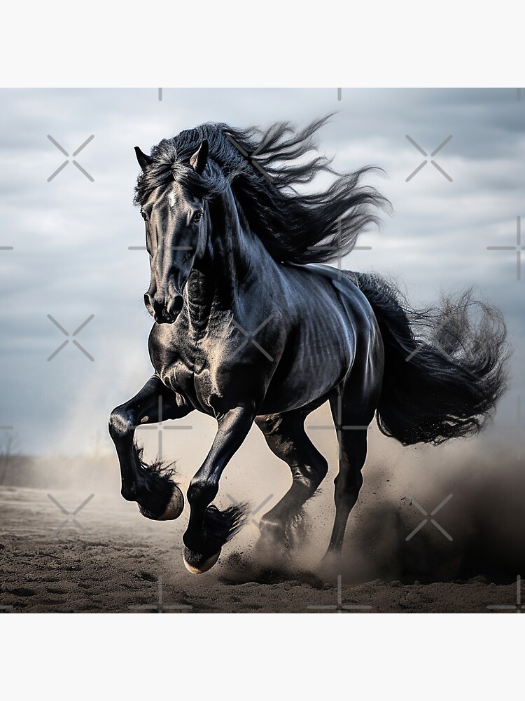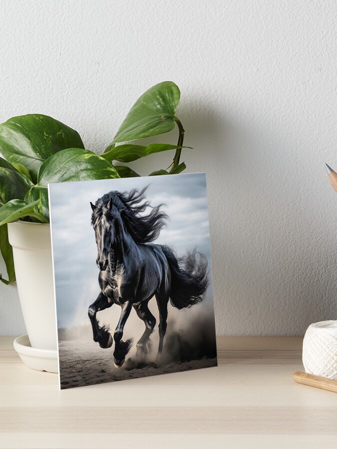 Impression rigide for Sale avec l'œuvre « Cheval frison au galop » de l'artiste Elisabeth Lucas | Redbubble