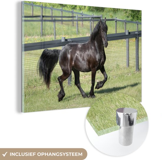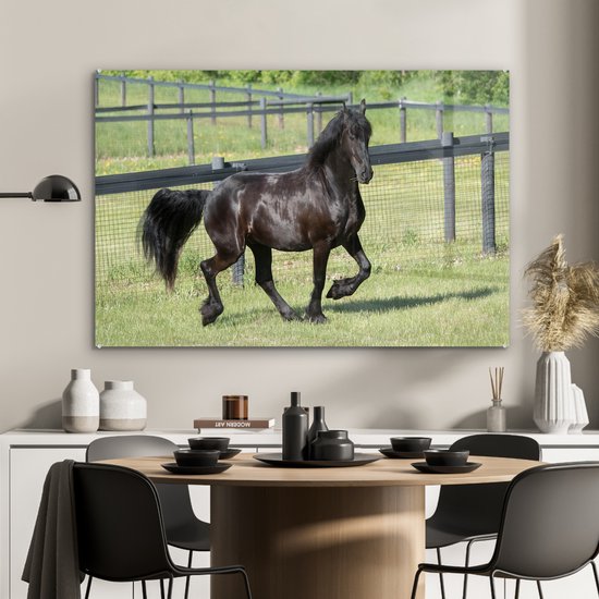 MuchoWow® Peinture sur verre - Cheval frison au galop - 90x60 cm - Peintures sur verre... | bol