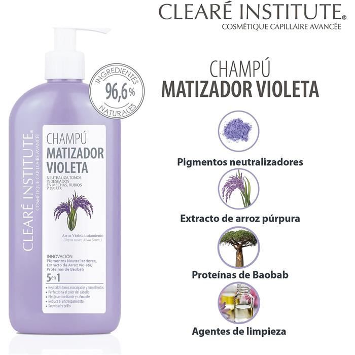 Clearé Institute, Shampooing Mattifiant Violet, Neutralise les tons indésirables, Spécialement pour les cheveux teints, blonds[954] - Cdiscount Au quotidien