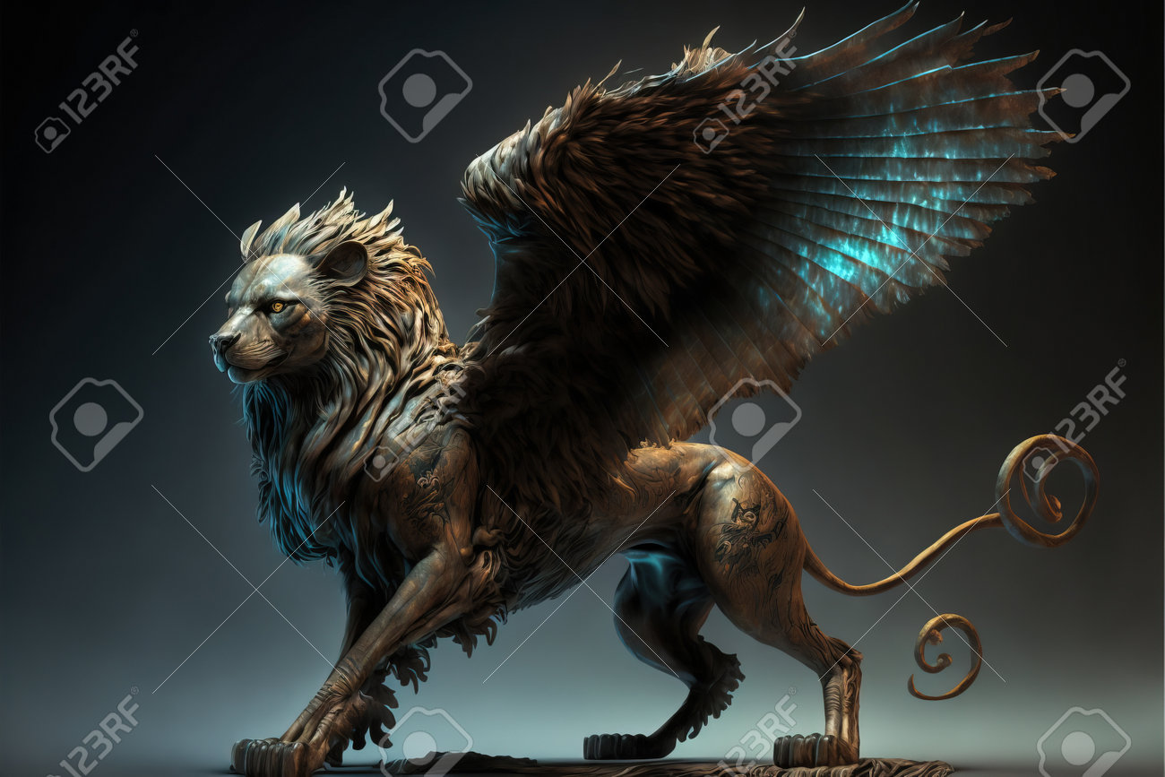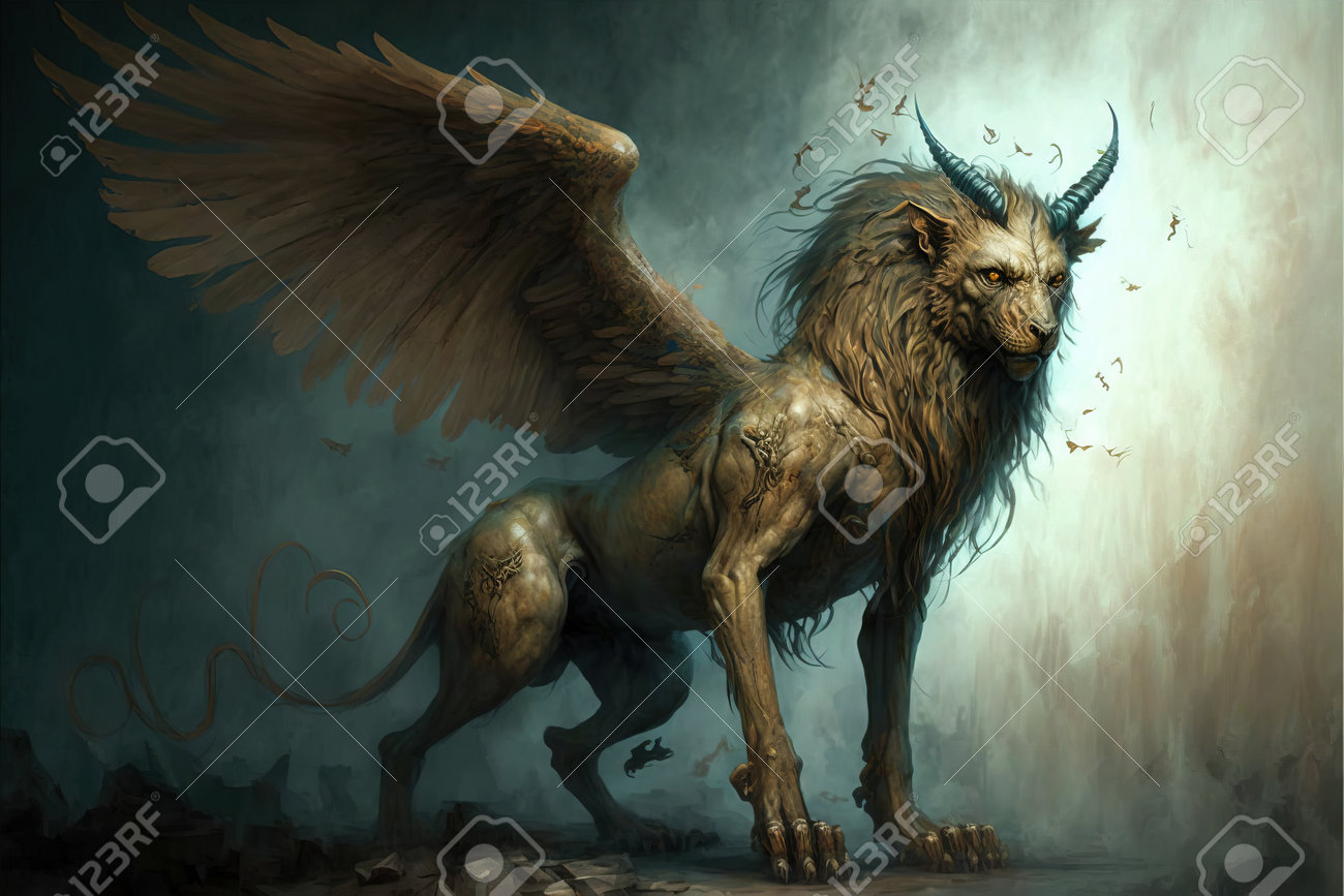 Chimère Mythique : Tête De Lion, Queue De Serpent. Bête Mythologique Grecque Composée De Parties D'animaux. Œuvre D'art Représentant Une Chimère. IA Générative Banque D'Images et Photos Libres De Droits. Image 203137414