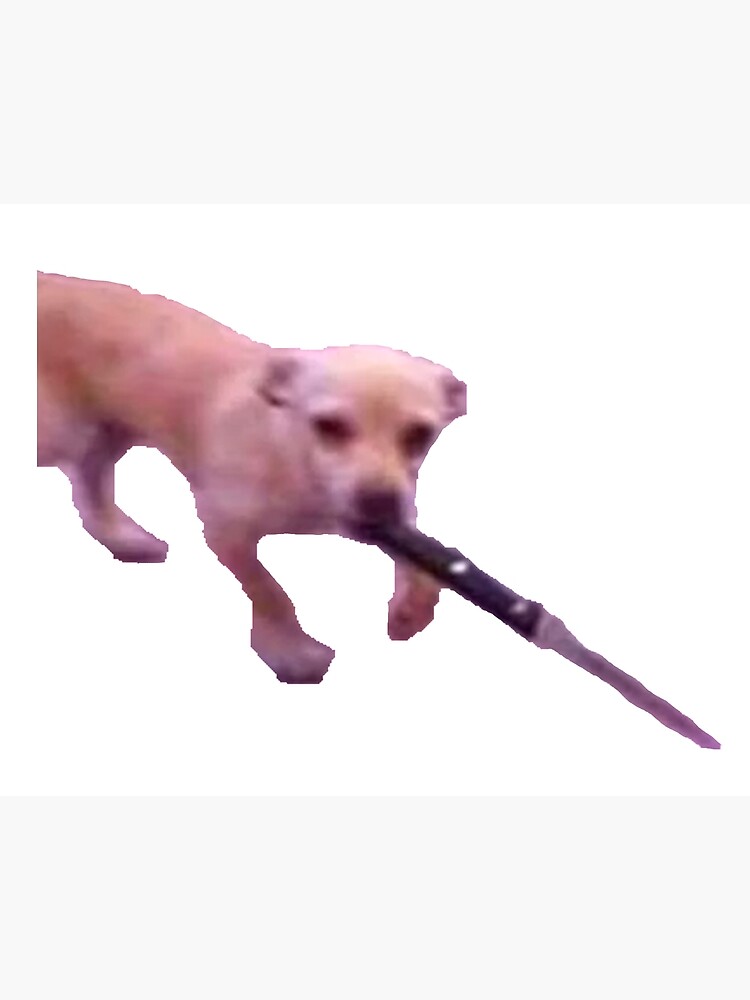 Impression rigide for Sale avec l'œuvre « chien tenant un couteau » de l'artiste woollymonkey | Redbubble