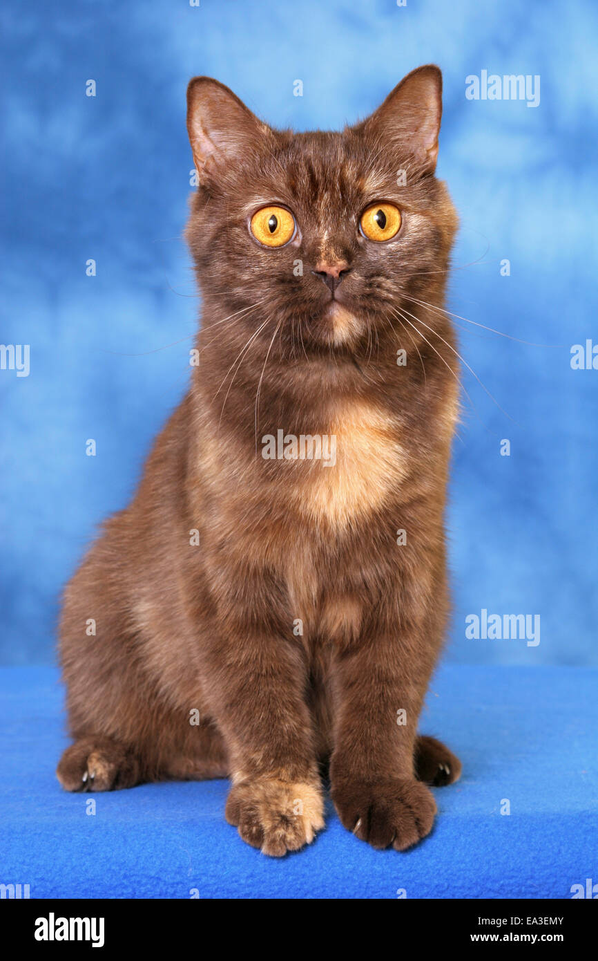 Chocolate British Shorthair Cat Sitting Studio Stock Photo - Alamy