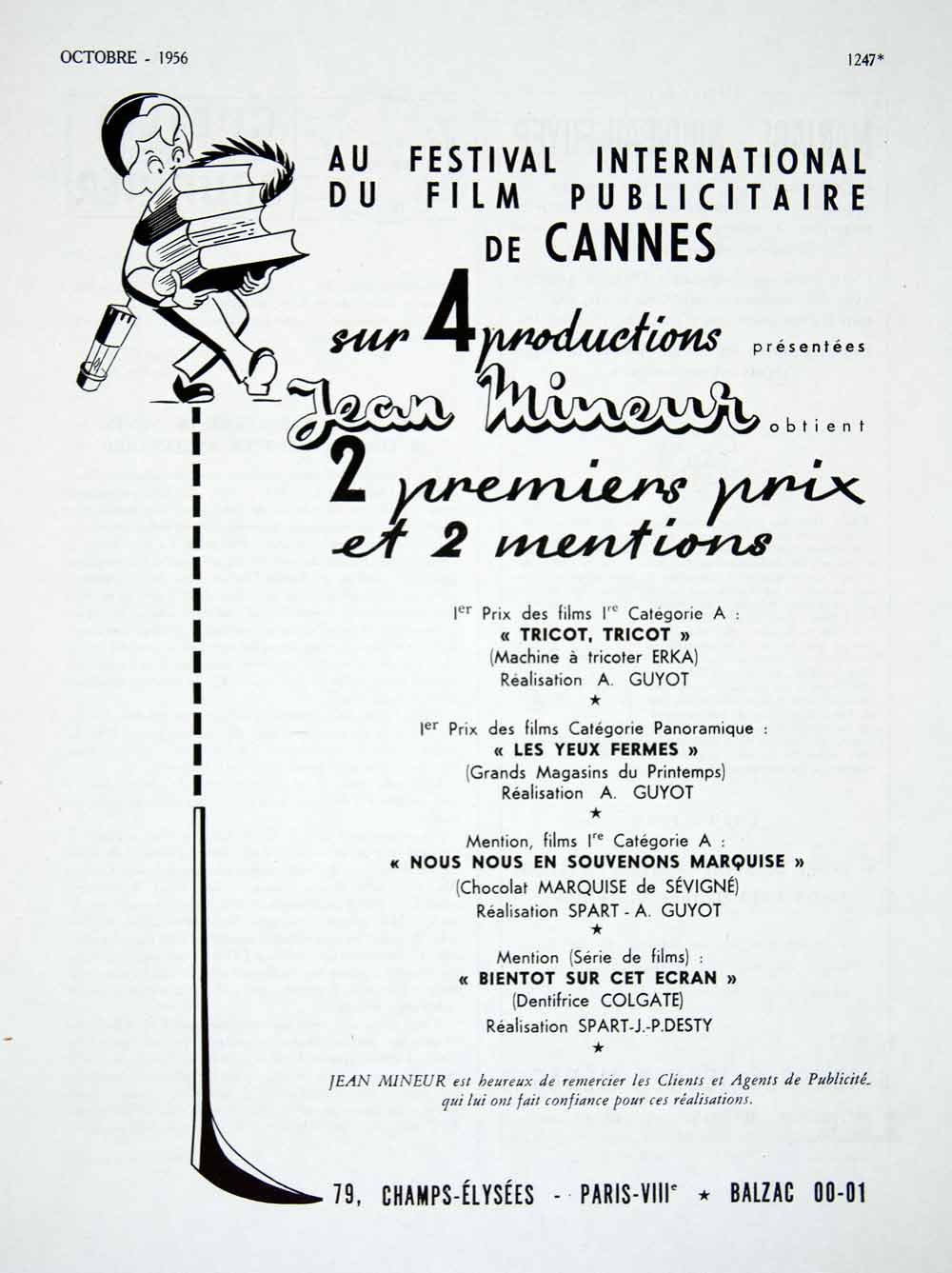 1956 Ad Jean Mineur Schoolboy French Tricot Yeux Fermes Ecran ...