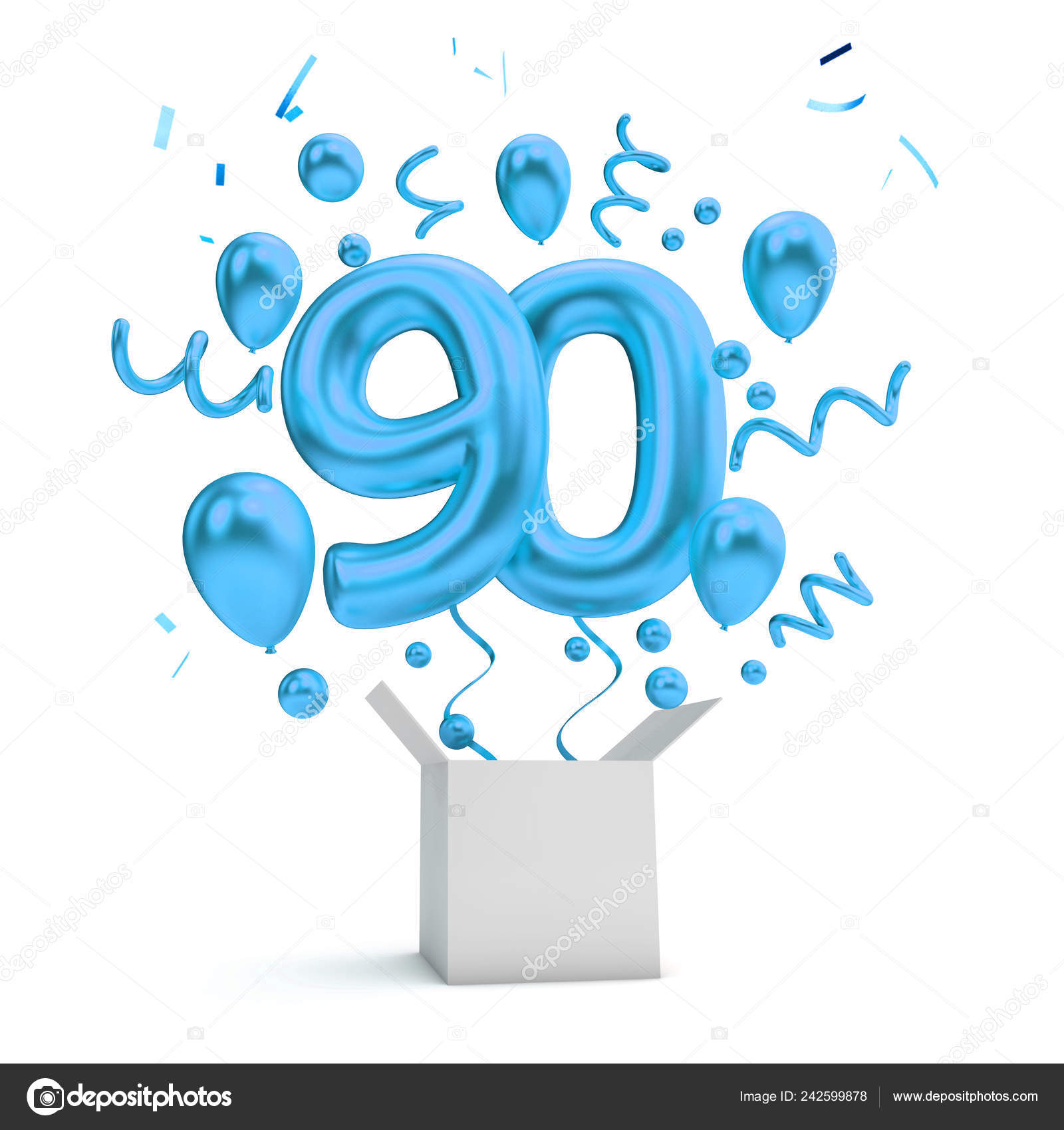 Joyeux 90E Anniversaire Ballon Surprise Bleu Boîte Rendu image ...