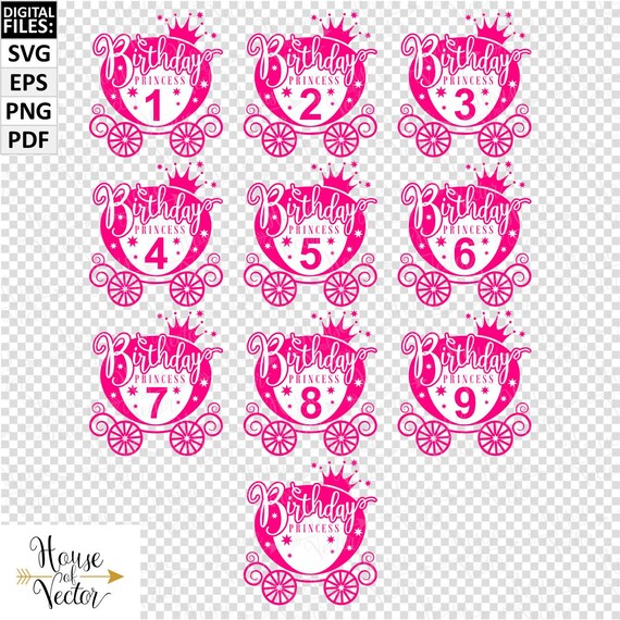 Anniversaire Princesse SVG, png, EPS, pdf Clipart. Chariot, couronne, étoiles et nombres de 1 à 9 fichiers de téléchargement numérique vectoriel. Bricolage danniversaire pour enfants - Etsy France