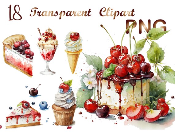18 Dessert Clipart, Cherries Clipart, Cherries Dessert Png, Dessert Png, Summer Clipart, Digital Clipart, Digital Download, Commercial Use - Etsy
