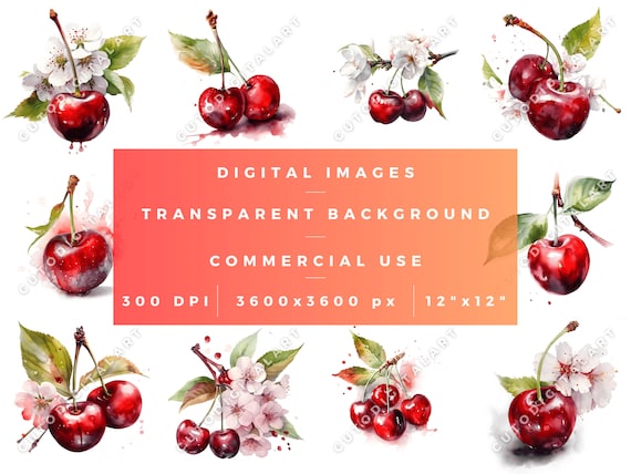 Aquarelle Cherry Clipart Bundle, Illustrations de cerises transparentes, graphiques png Red Cherry, utilisation commerciale, cerise colorée, PNG Clip Art - Etsy France