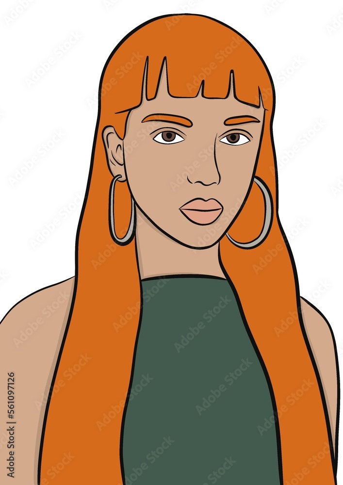 Illustration d'un portait d'une jeune fille rousse aux cheveux ...