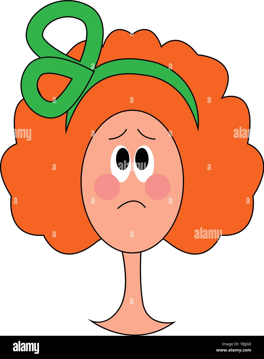 Une triste petite fille aux cheveux orange et vert, bow, vecteur ...
