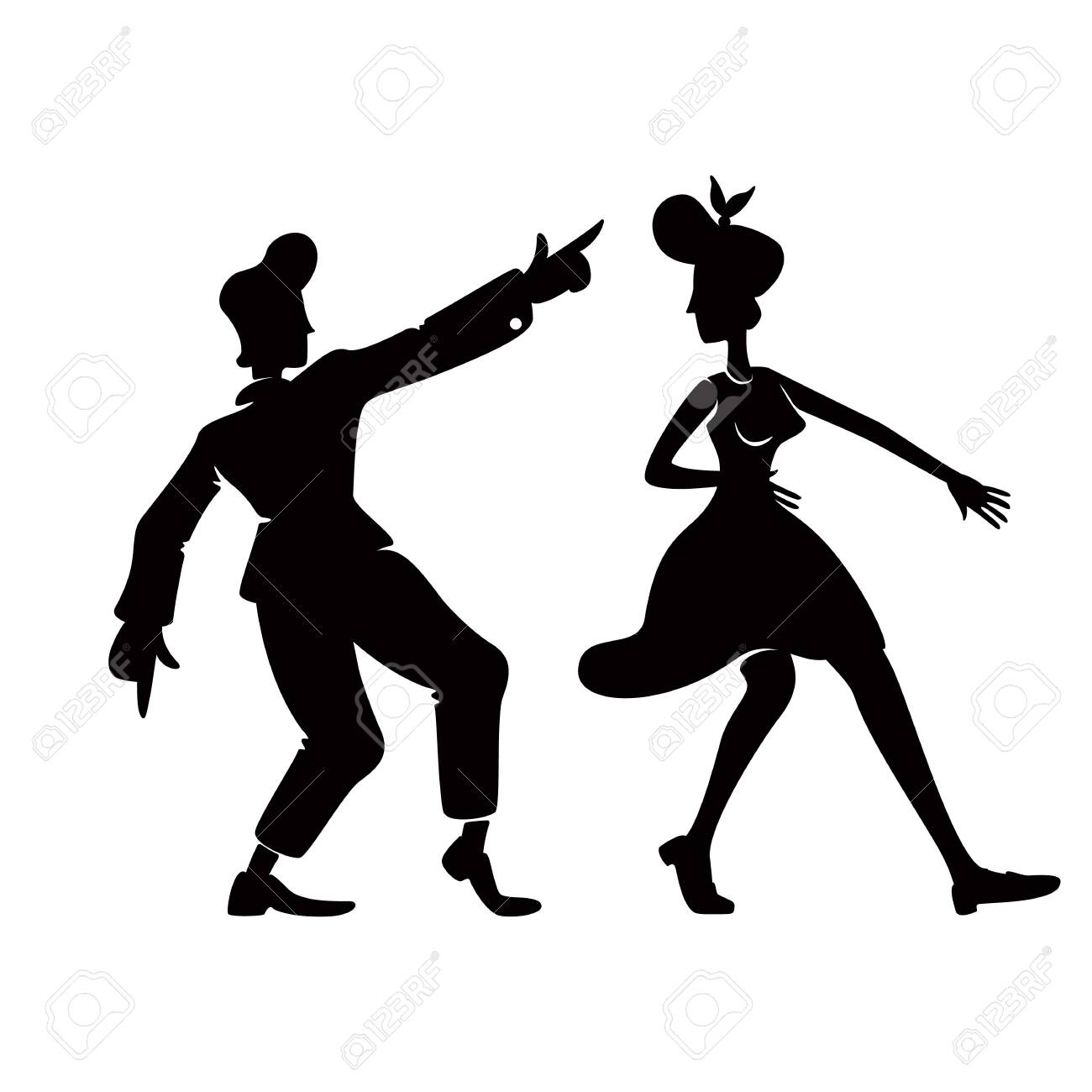 Rock N Roll Danseurs Silhouette Noire Illustration Vectorielle. Les Gens Rétro Dans La Pose De Danse Jive. Homme Et Femme Vintage. Clip Art Libres De Droits, Svg, Vecteurs Et Illustration. Image 142338267