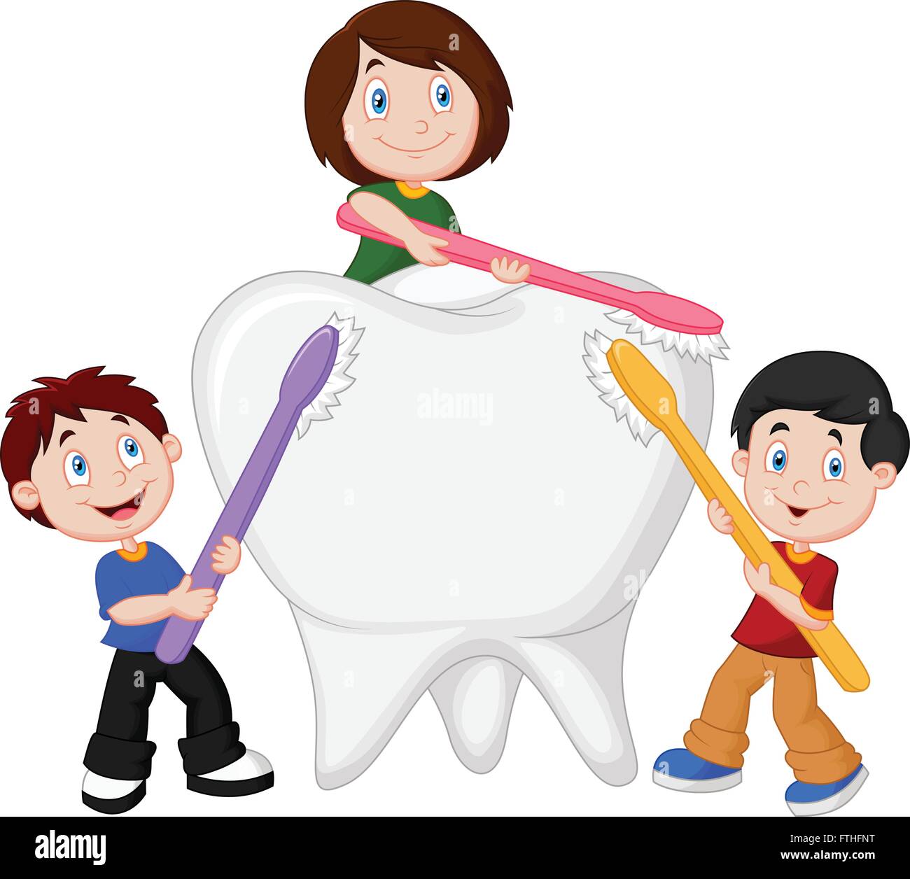 Les enfants le brossage des dents blanches Image Vectorielle Stock - Alamy