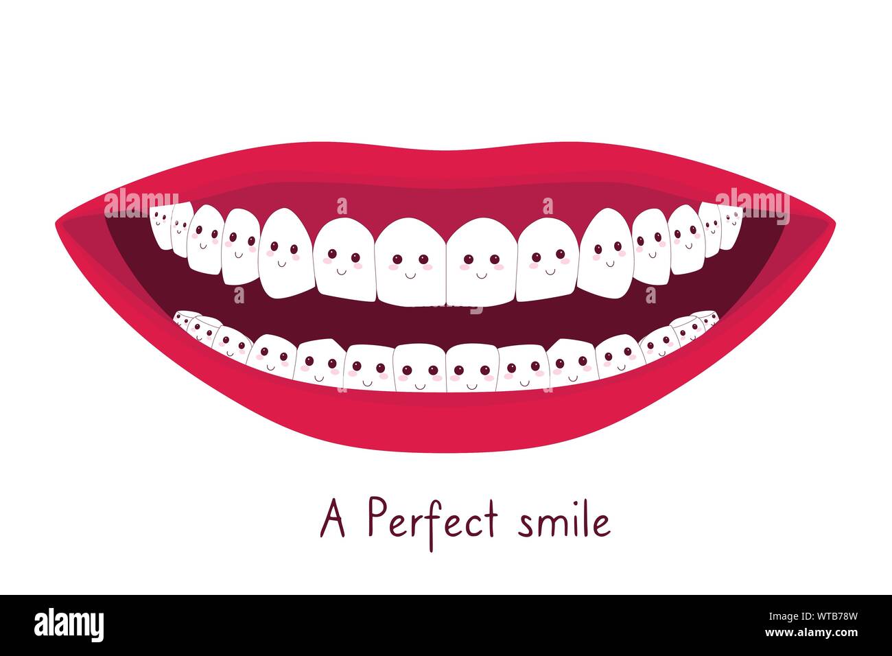 Illustration De La Bouche De Sourire Avec Des Dents Blanches Parfaites Et Des Lèvres Rouges Éléments Isolés Vectoriels Vecteurs libres de droits et plus d'images vectorielles de Appareil dentaire - iStock