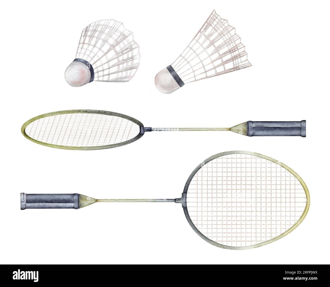 Set d'équipement de sport, pour badminton, volant. Illustration aquarelle sur fond blanc isolé. Style de vie athlétique, design sportif. Clipart Photo Stock - Alamy