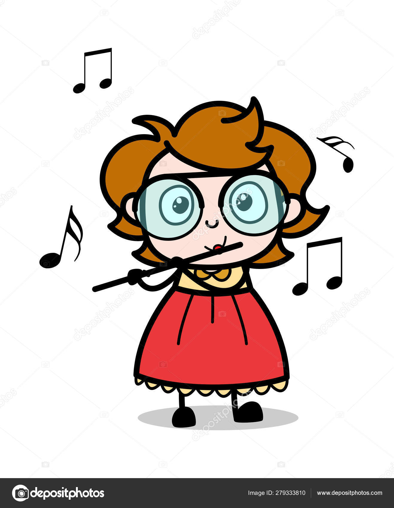 Jouer de la flûte - Dessin animé adolescent Intelligent Girl Vector Illustr Vecteur par ©lineartist 279333810