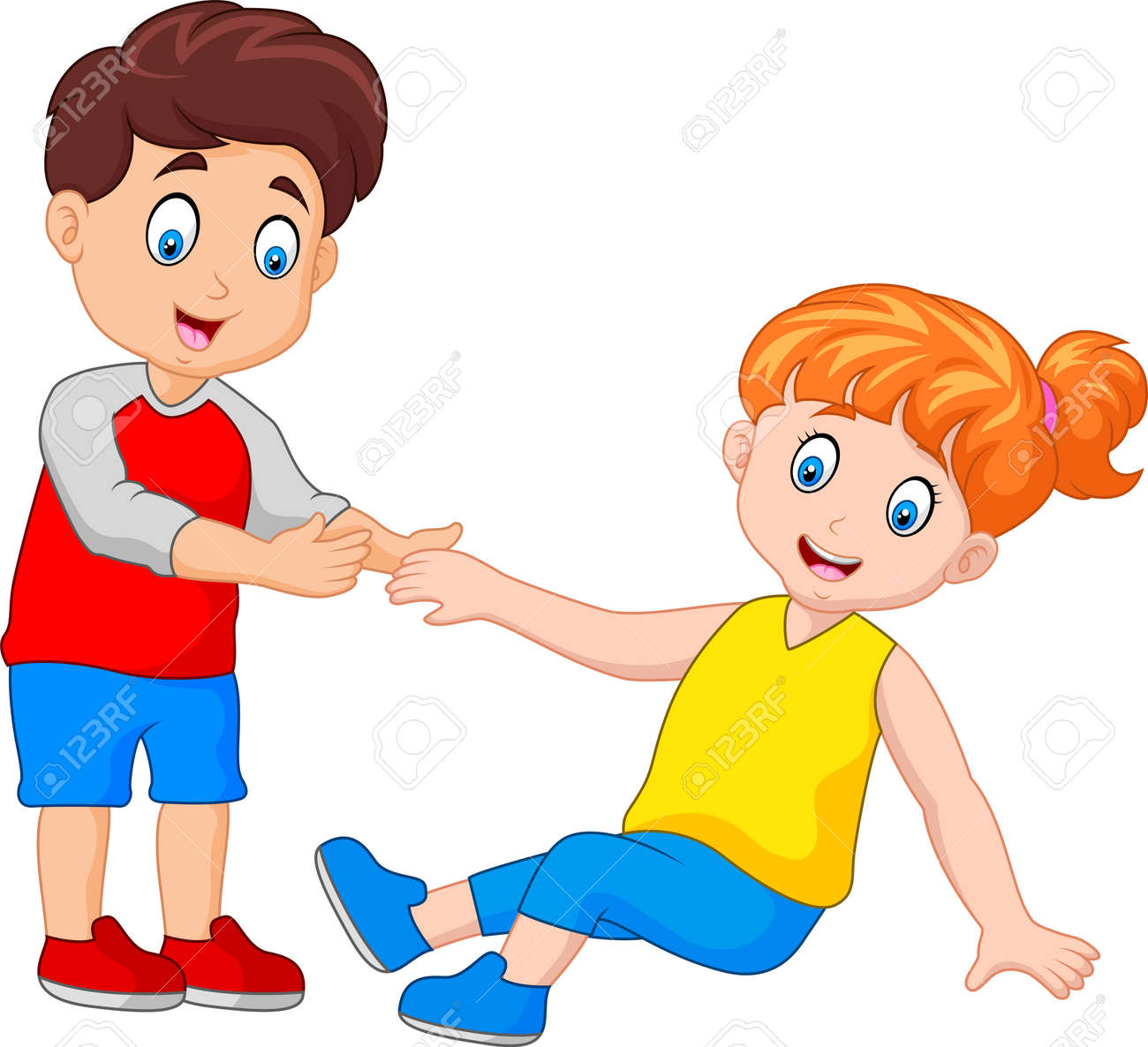 Cartoon Fille Aidant Un Garçon Se Lever. Clipart Illustration Avec Des Dégradés Simples. Chaque Sur Une Couche Séparée. Clip Art Libres De Droits, Svg, Vecteurs Et Illustration. Image 59922358
