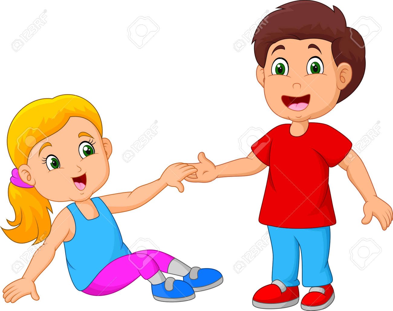 Garçon Aidant Une Fille À Se Lever Clip Art Libres De Droits, Svg, Vecteurs Et Illustration. Image 110770457