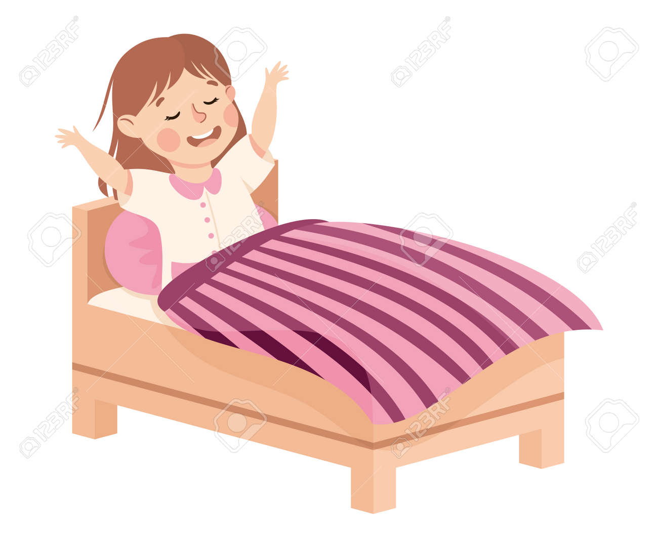Petite Fille Se Lever Ou Se Réveiller Le Matin Engagé Dans L'activité Quotidienne Et L'illustration Vectorielle De Routine Quotidienne Clip Art Libres De Droits, Svg, Vecteurs Et Illustration. Image 173962106