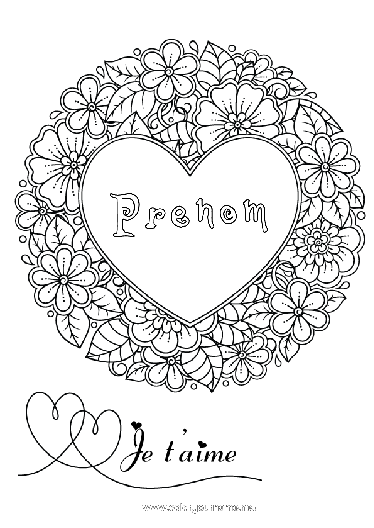Coloriage n°1005 - Fleurs Coeur Je t'aime