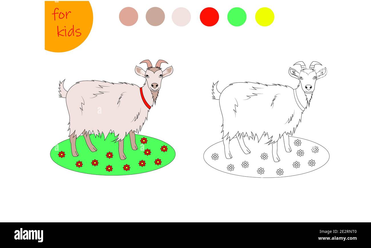 Coloriage du contour d'un dessin animé chèvre.animaux de ferme. Livre de coloriage pour enfants. Colorier par couleur Photo Stock - Alamy