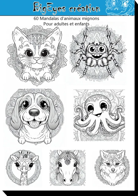 LIVRE DE 60 coloriages d'animaux mignons en mandala pour enfants ou adultes EUR 9,90 - PicClick FR