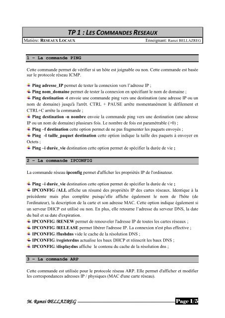 Les principales commandes réseau I. La commande IPCONFIG II. La ...
