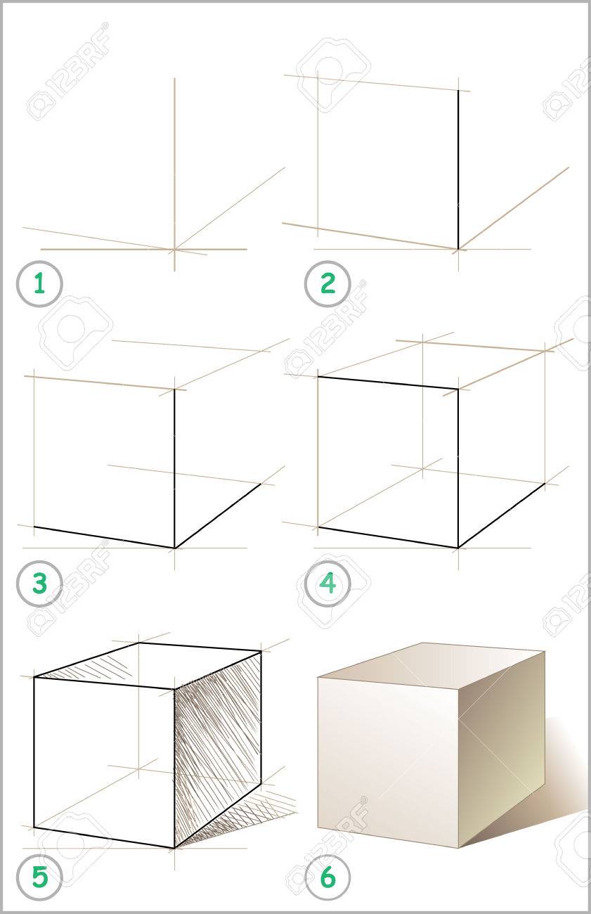 Comment Dessiner Le Cube Dans Le Processus De Dessin De Cube En Perspective 3d Illustration de Vecteur - Illustration du grille, ligne: 200851695