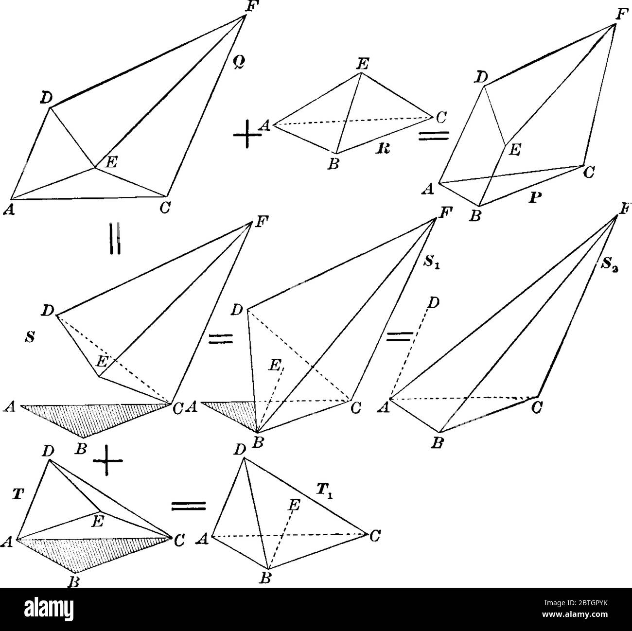 Un prisme triangulaire tronqué a une face triangulaire plane à un angle oblique, un dessin de ligne vintage ou une illustration de gravure Image Vectorielle Stock - Alamy