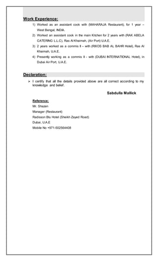 Kunal Barman - Commis Chef - Villa Group (Maldives) | LinkedIn