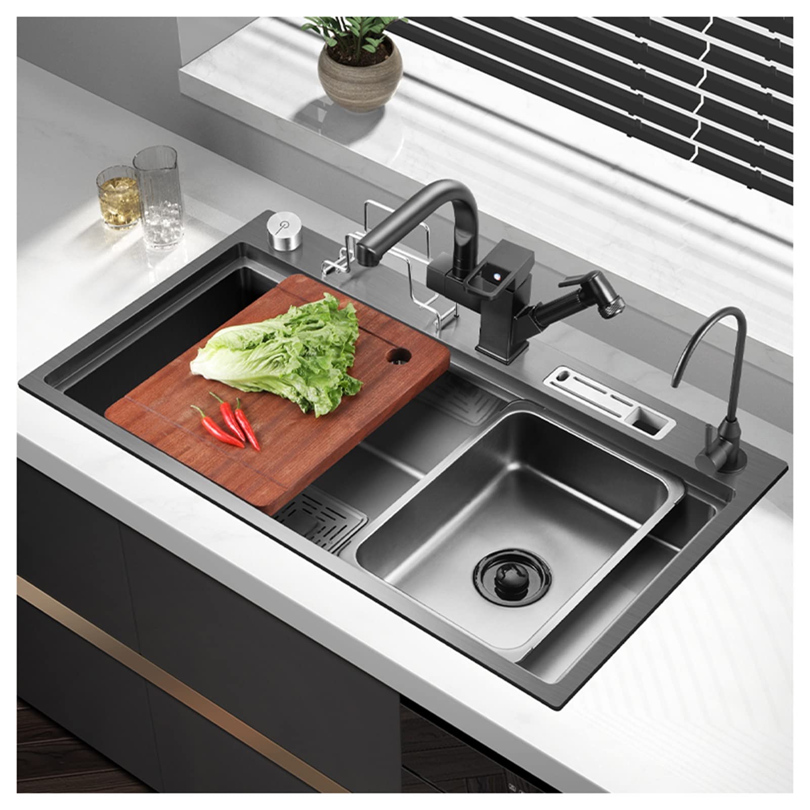 Cuisine avec planche à découper, lave-tasses, robinet cascade, évier de bar de restaurant, évier simple de grande capacité, évier de lavage de légumes en acier inoxydable (couleur : acier noir, t :