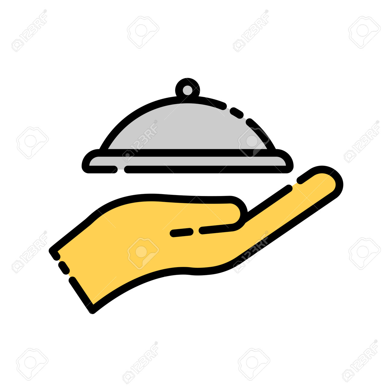 Icône De Couleur De Ligne De Restaurant. Icône Cloche, Nourriture, Cuisine Avec Icône Main. Conception Simple Modifiable. Vecteur De Modèle De Conception Clip Art Libres De Droits, Svg, Vecteurs Et Illustration. Image