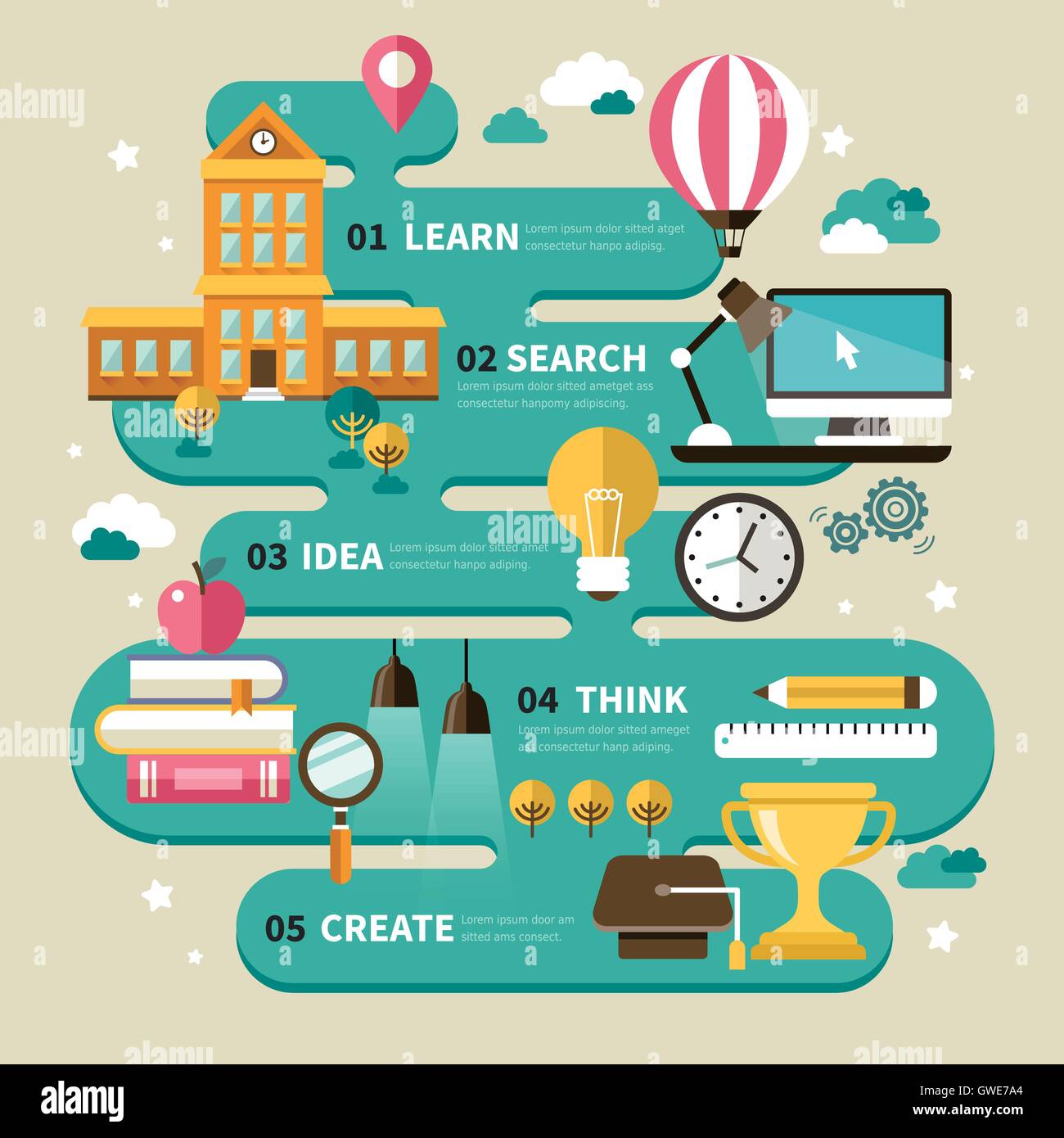 Illustration humaine et conception infographique pour les options commerciales, étapes d'apprentissage, processus d'éducation. vecteur plat pour page de destination, web, site Web, bannière, applications mobiles, flyer, affiche, brochure 1870956 Art ...