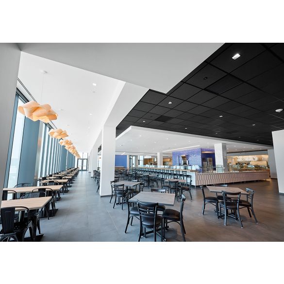 Le plafond suspendu en métal rend la conception de l'espace plus flexible