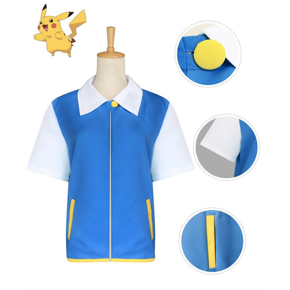 Cartoon Anime Ash Ketchum Trainer Blue Jacket Costume Pokemon ...