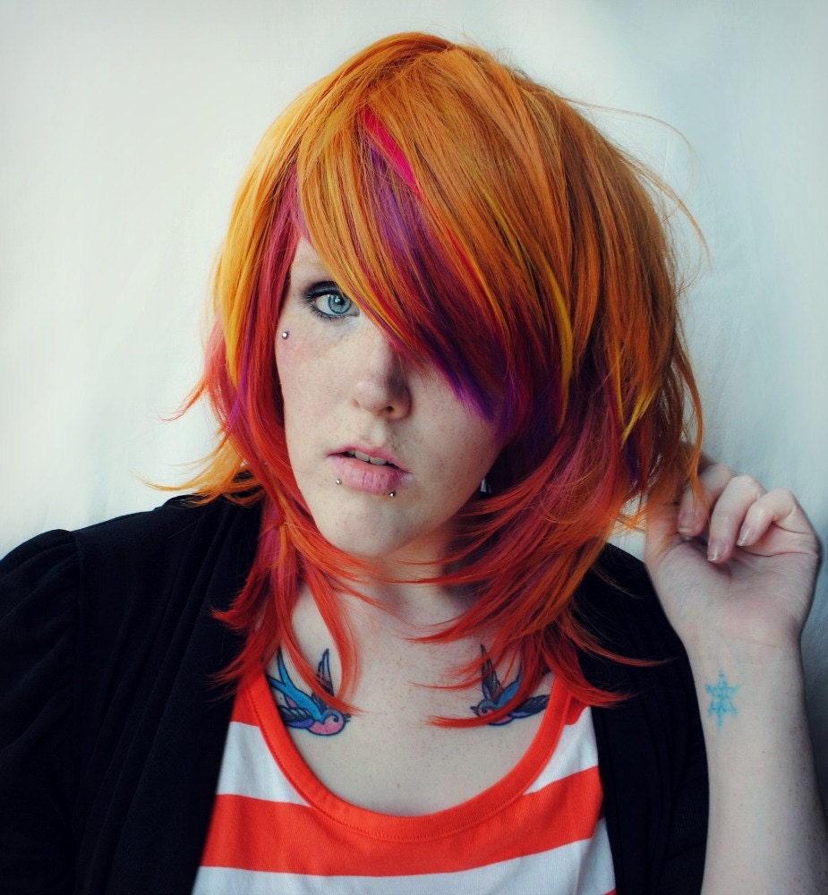 Perruque de PHOENIX FIRE / / Hayley Williams inspird Orange Rose jaune violet cheveux / / scène Lolita cheveux / / perruque Punk Alternative droite - Etsy France