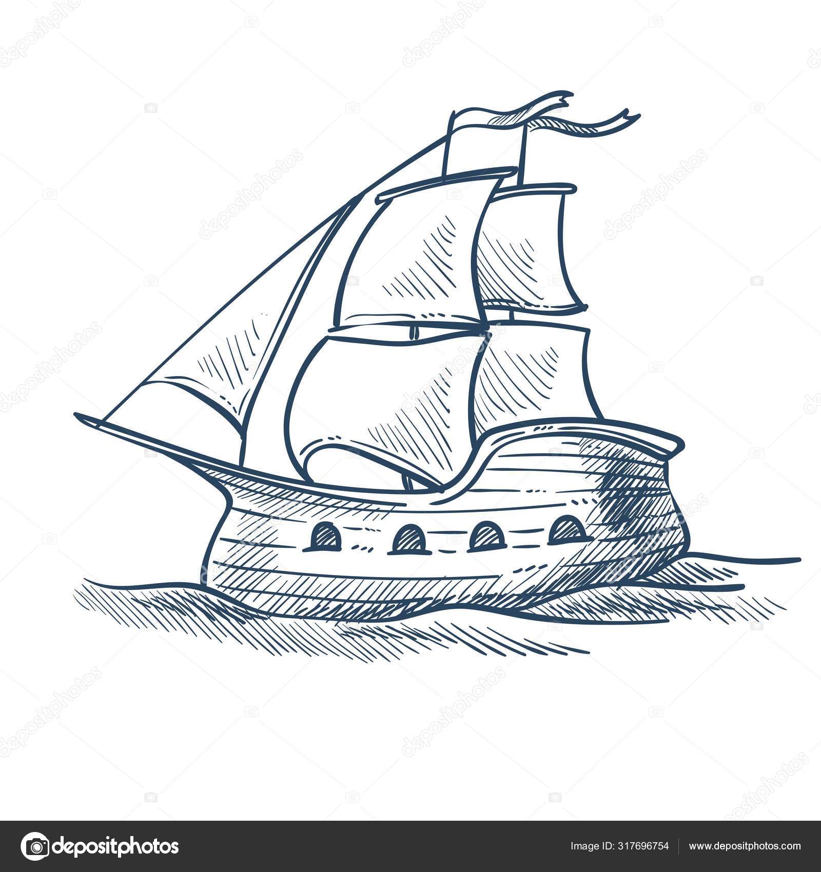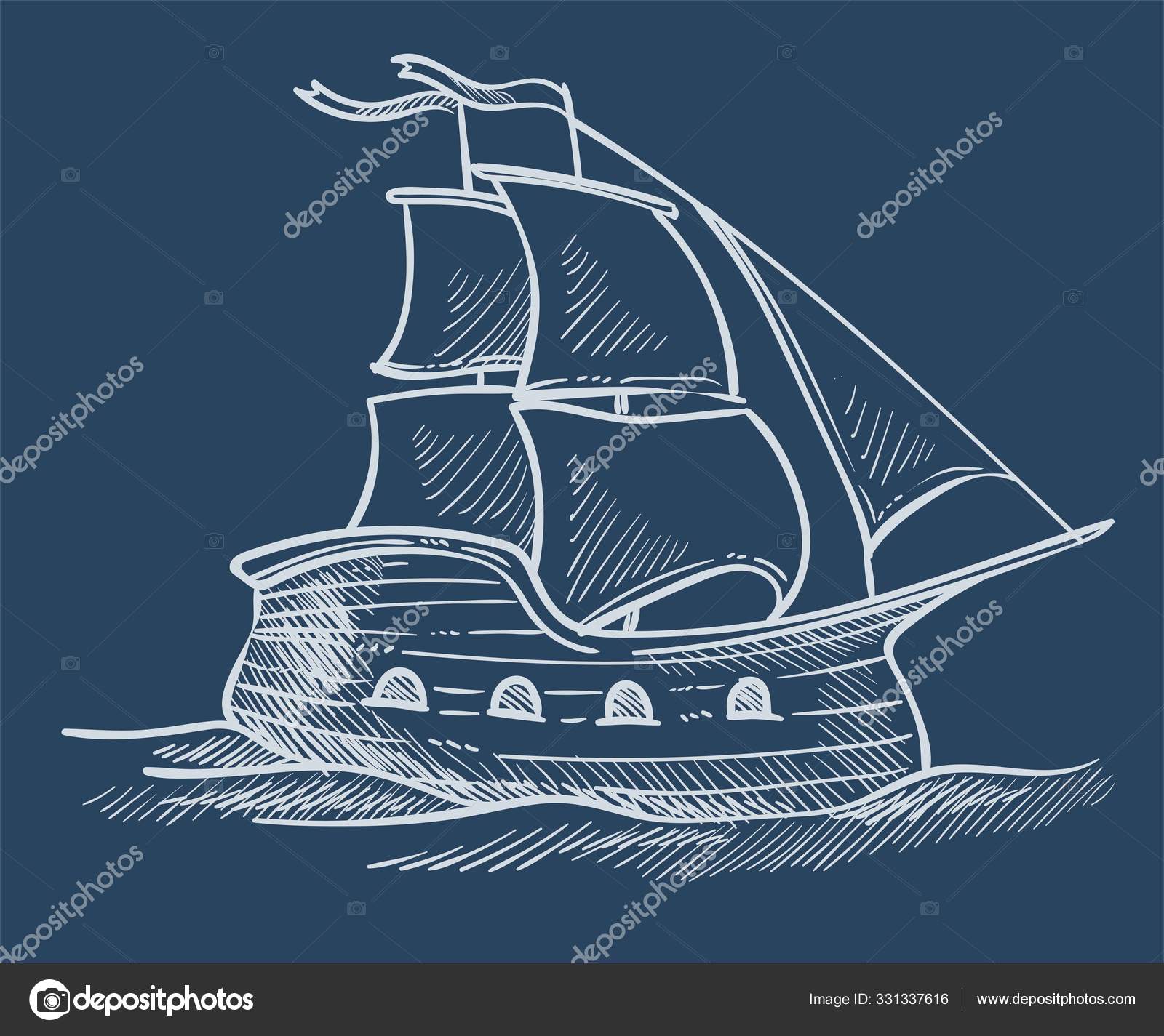 Voilier Voilier Bateau Bateau Vintage Brigantine Croquis Illustration de Vecteur - Illustration du récipient, course: 255018299