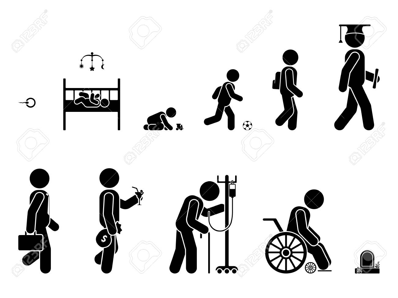 Cycle De Vie De L'homme. De La Naissance À La Mort. Clip Art Libres De Droits, Svg, Vecteurs Et Illustration. Image 99962471
