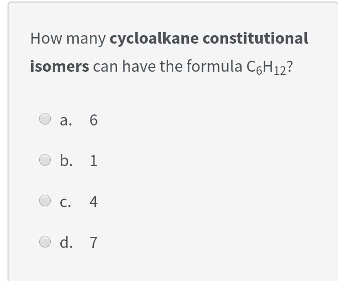 SOLVED: How many cycloalkane constitutional isomers can have the ...