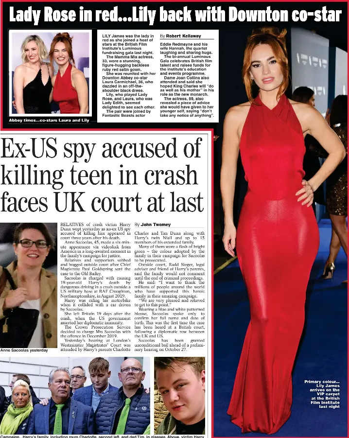 Lady Rose in red...Lily back with Downton co-star - PressReader